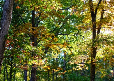 • Rolling hills, vegetation, hardwood forest